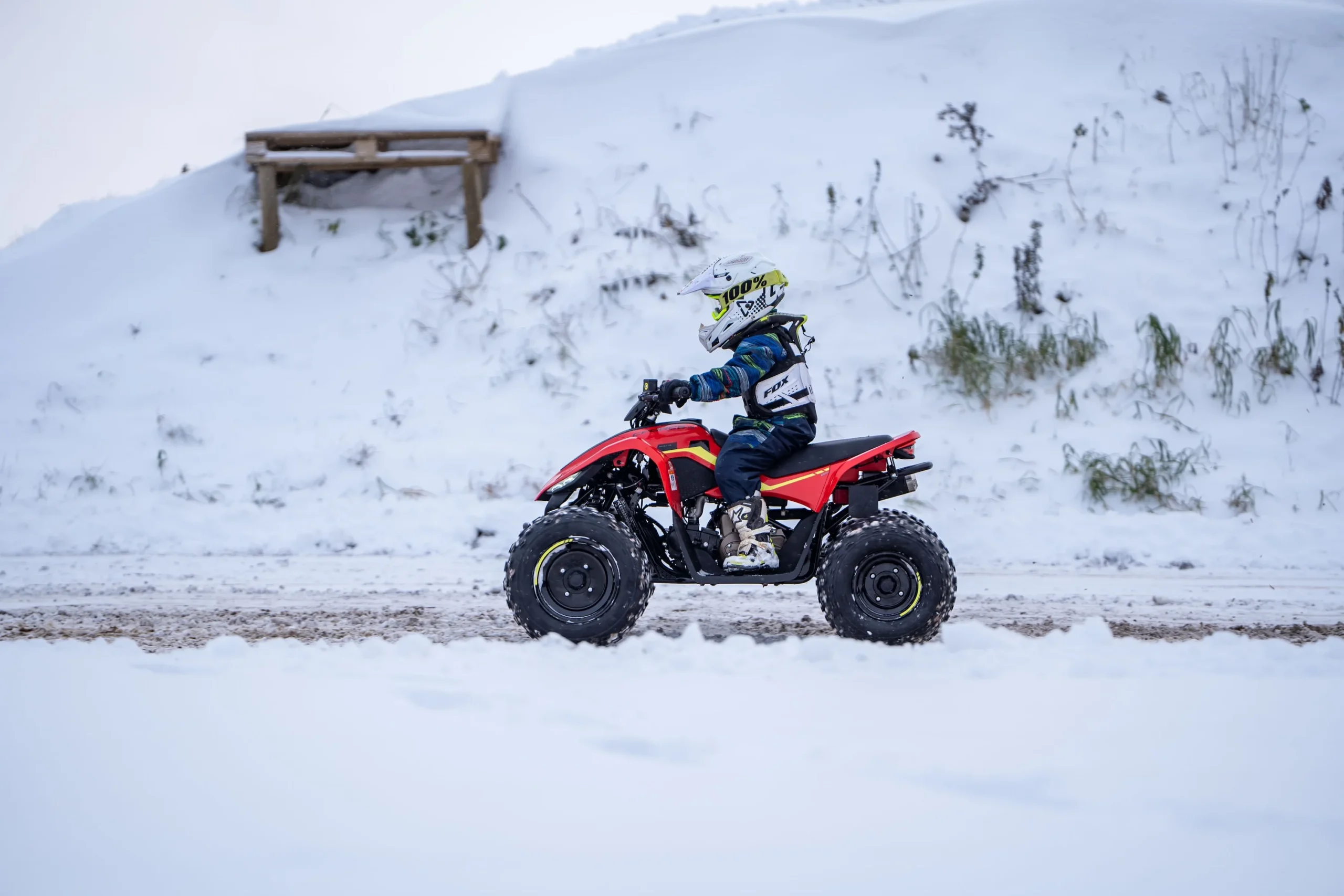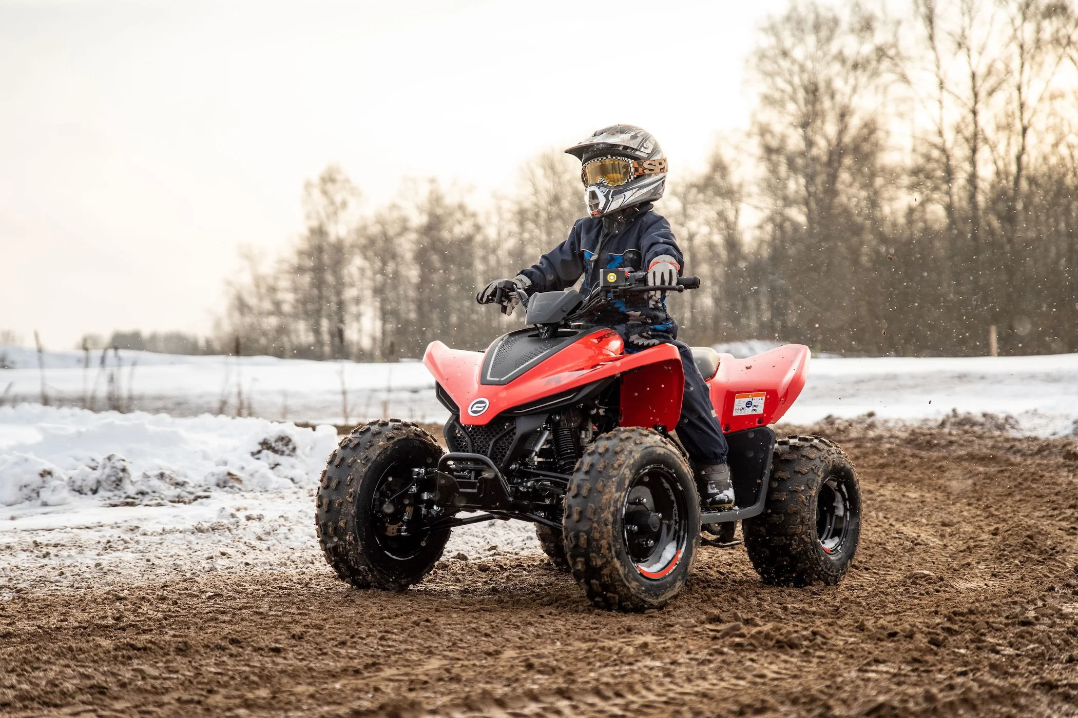 Ladná dynamika a přesnost: Lineární zátah motoru umožňuje mladému jezdci precizně manévrovat v technických pasážích nebo v extrémních situacích, kde je potřeba jemné dávkování plynu, nikoliv hrubá síla.