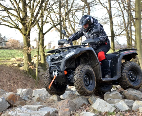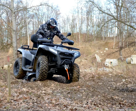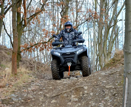 Lano navijáku operuje bezpečně v horizontálních a vertikálních rolnách, navíc je tento technický prvek dobře chráněn předsunutým rámem. Ovládání navijáku je elektronické z řídítek stroje.