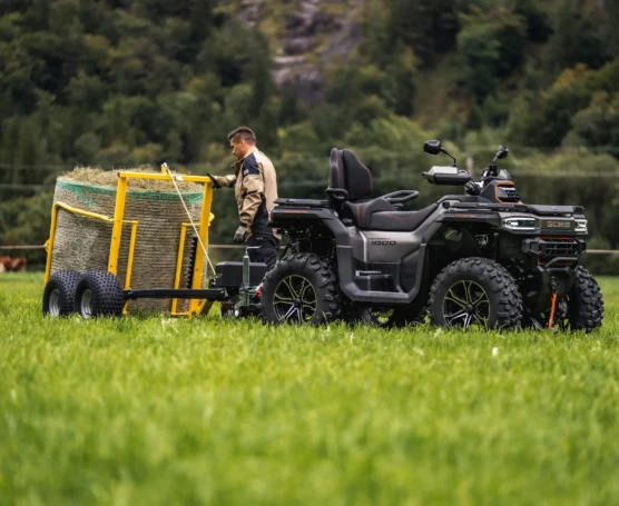 Silný naviják umožňuje kromě vyproštění čtyřkolky nebo vytažení klády, také ovládání nejrůznějšího příslušenství jako je radlice nebo zametací kartáč apod.