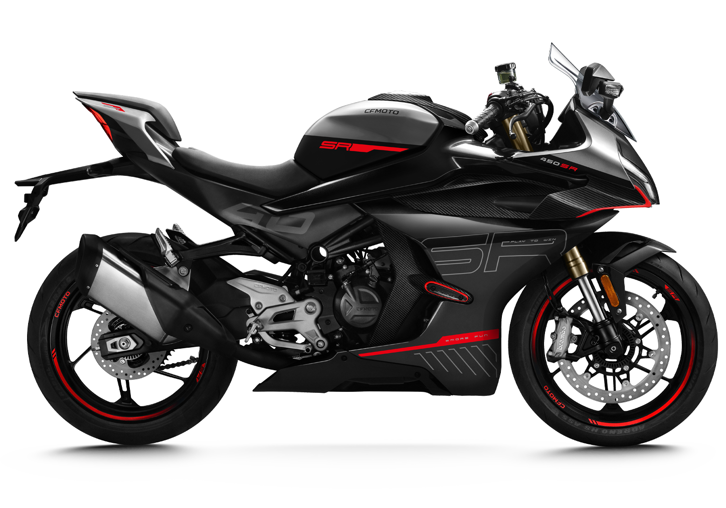 Atraktivní a vysoce funkční design je hlavním poznávacím znakem CFMOTO 450SR. Výsledná podoba stroje je plodem 200 simulací a celkem 30 hodin testování v aerodynamickém tunelu, což vedlo k více než dvaceti zásadním konstrukčním změnám.